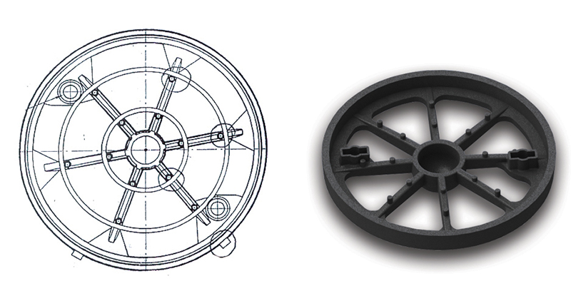 2) امکان تولید کلاف و ستاره از جنس چدن خاکستری (C250) و چدن داکتیل (D400). دارای آرماتور بندی با میلگرد 8 آجدارجهت افزایش