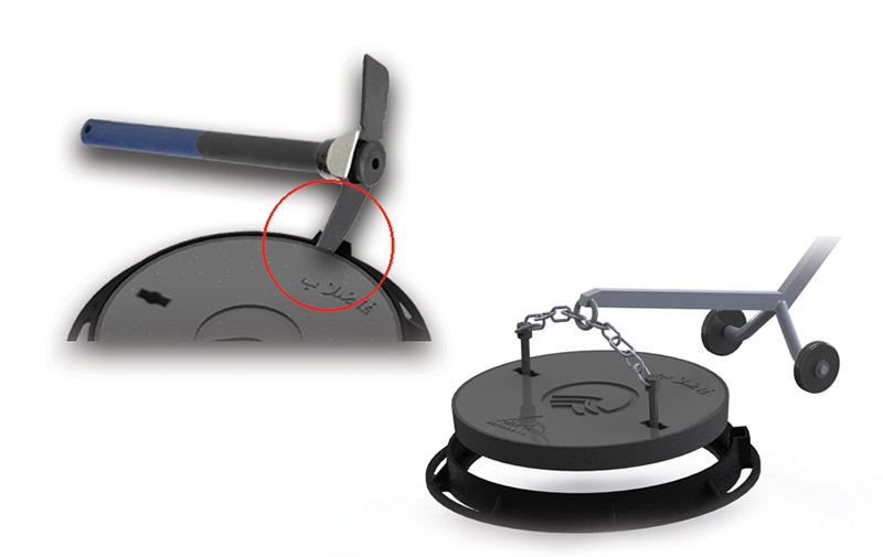 6) دارای محل کُلنگ خور برروی کلاف جهت سهولت دربرداشتن درب منهول. همچنین دارای آچار مخصوص چرخدار جهت سهولت در باز و