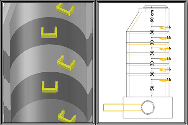 2) طراحی تعدادی رزوه کبریتی با عمق زیاد بر روی پایه های پله به دلیل گیرایی محکم با بتن و جلوگیری از بیرون آمدن پله.